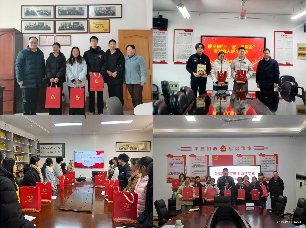 岁末寒冬,新元肇始。为切实关怀勤工助学学生群体,深化资助育人实效,学工部资助中心于近日开展“暖冬同行•‘蛋’愿顺遂”年终关怀活动,为寒冬中的家庭经济困难学子送去温暖与鼓励,推进资助育人工作走深走实。