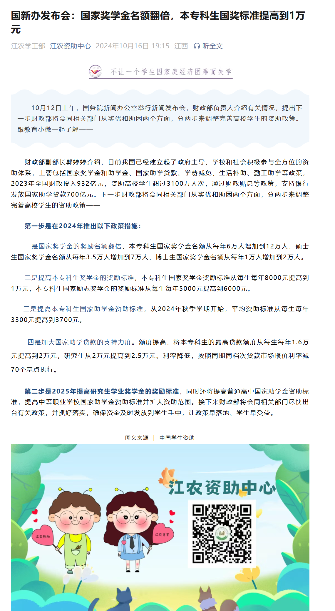 国新办发布会:国家奖学金名额翻倍,本专科生国奖标准提高到1万元